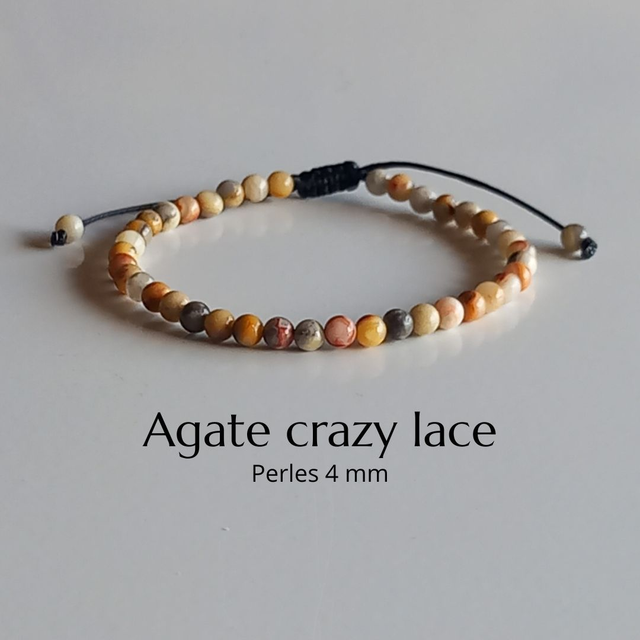 Bracelet ajustable en Agate crazy lace, perles en pierre naturelle 6 mm