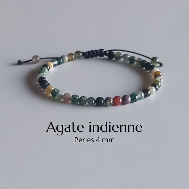Bracelet ajustable en Agate indienne, perles en pierre naturelle 4 mm
