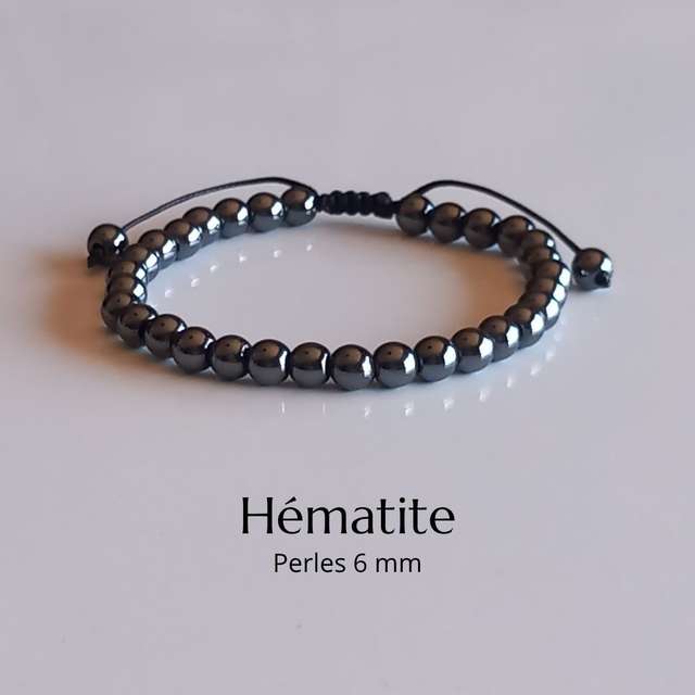 Bracelet ajustable en Hématite, perles en pierre naturelle 6 mm
