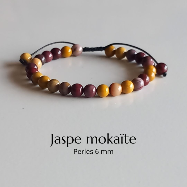 Bracelet ajustable en Jaspe mokaïte, perles en pierre naturelle 6 mm