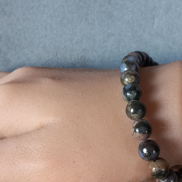 Bracelet ajustable en Llanite, perles en pierre naturelle 8 mm