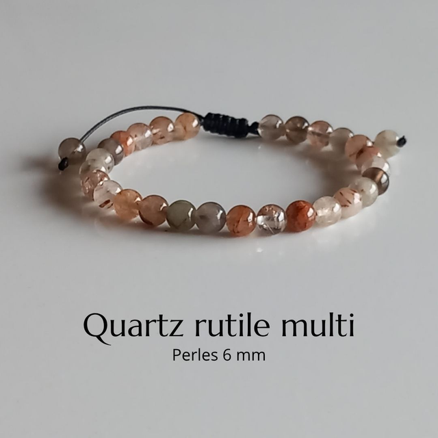 Bracelet ajustable en Quartz rutile multicolore, perles en pierre naturelle 6 mm