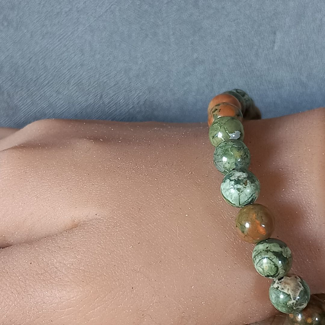Bracelet ajustable en Rhyolite, perles en pierre naturelle 8 mm