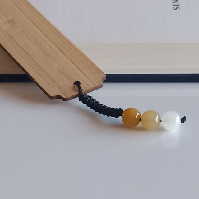 Marque-pages en bambou et Aventurine jaune, perles en pierre naturelle 8 mm