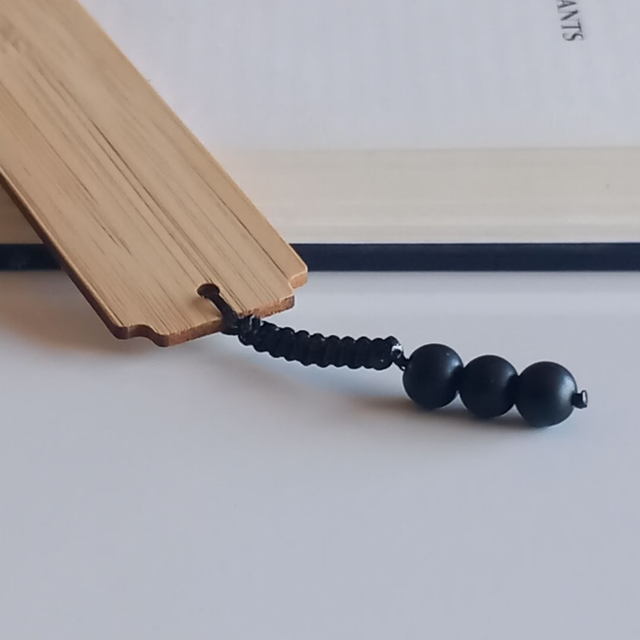 Marque-page en bambou et Onyx mat, perles en pierre naturelle 4 mm