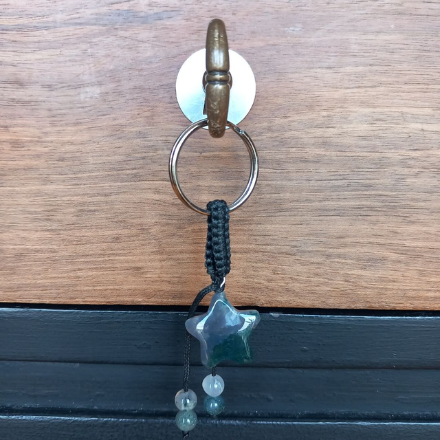 Porte-clés en Agate mousse, forme étoile et perles en pierre naturelle 6 mm