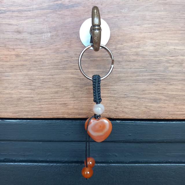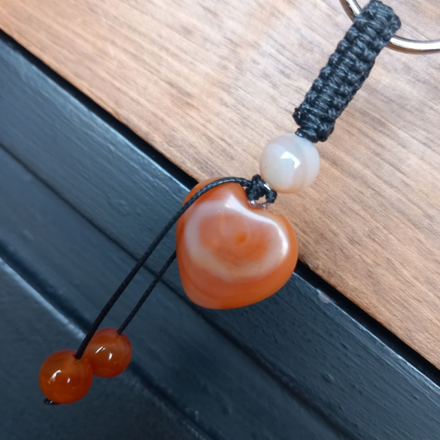 Porte-clés en Cornaline, forme coeur et perles en pierre naturelle 8 mm