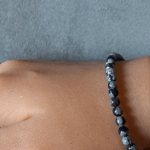 Bracelet ajustable en Obsidienne flocons de neige, perles en pierre naturelle 4 mm