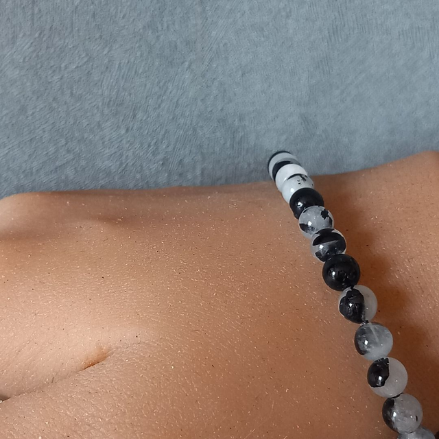 Bracelet ajustable en Quartz à Tourmaline, perles en pierre naturelle 6 mm