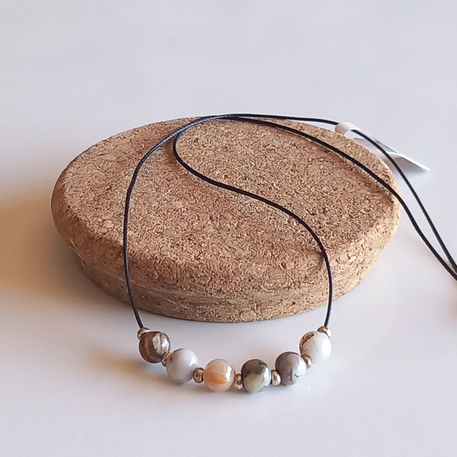 Collier en Agate feuille de bambou, perles en pierre naturelle 6 mm
